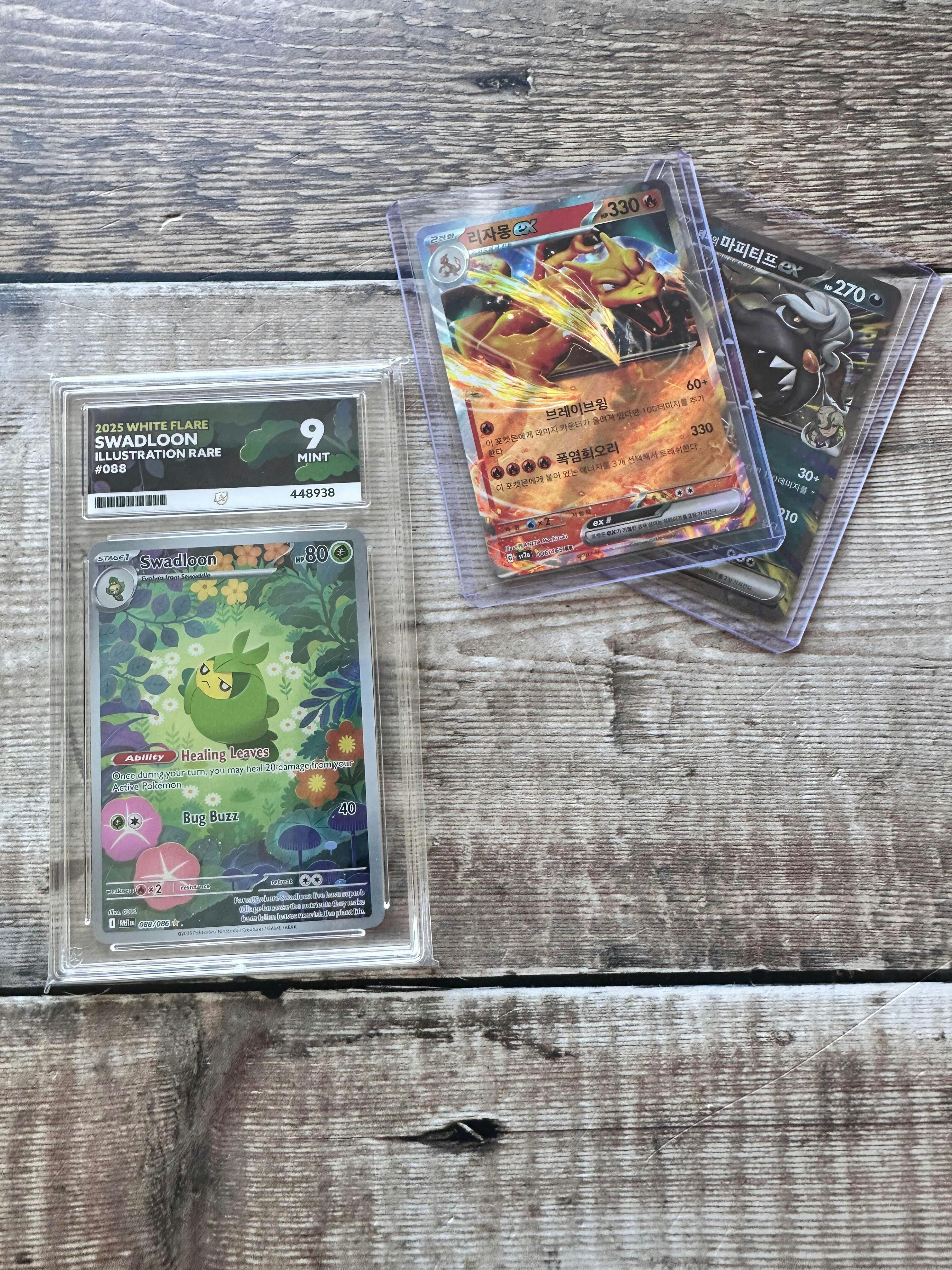 The stated values of graded cards (£30–£35) are based on current market estimates at the time of listing. Market values of trading cards may fluctuate over time and Trading Card Hub does not guarantee future resale value.