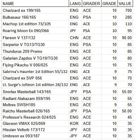 🧾 All slabs graded by trusted companies such as PSA, ACE, and CGC